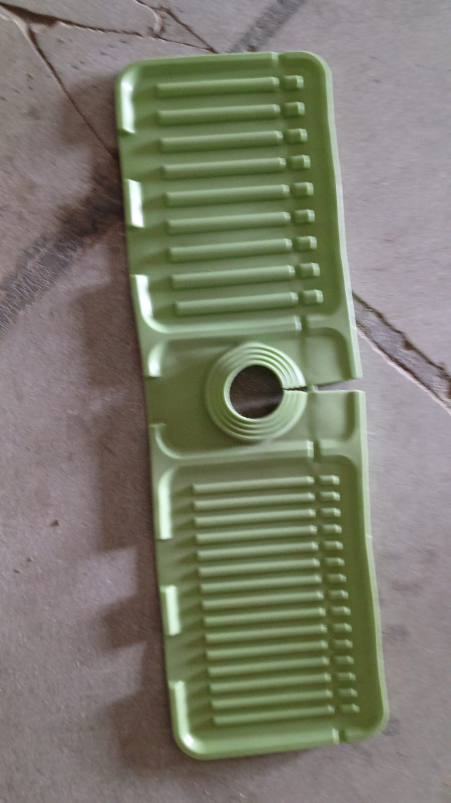The silicone faucet mat mat is made of silicone, soft and reliable, reusable, won't scratch your plate, easy to use, our faucet splash catcher is designed with drainage, so you don't need to worry about standing water on your mat or countertop.