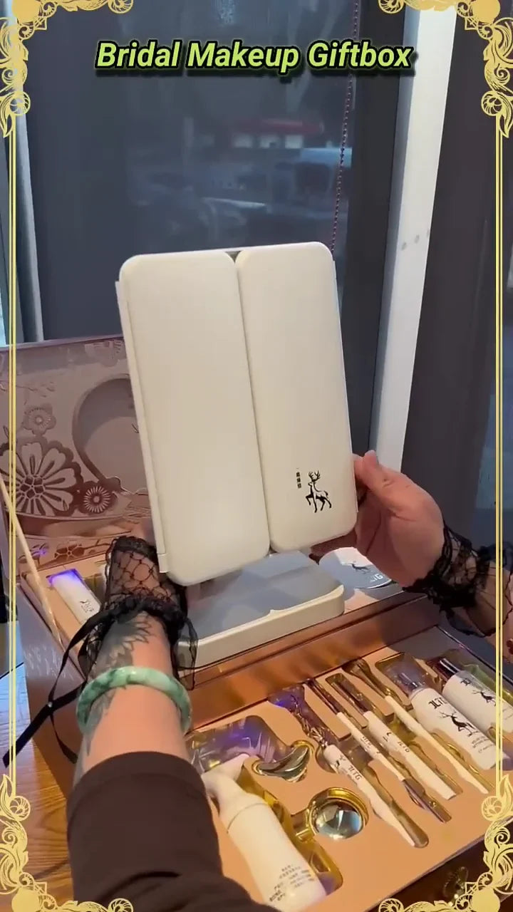 Luxury Bridal Makeup Gift Box Set – Complete Skincare & Beauty Essentials Kit with Elegant Case, LED Mirror, Facial Tools, Brushes & Premium Cosmetics – Perfect Wedding Gift for Brides and Special Occasions