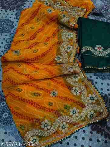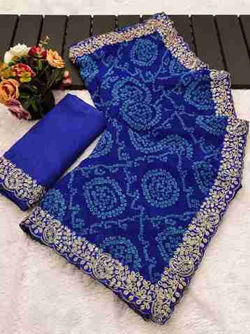 Versatile Styling: Pair this Bandhani georgette saree with a contrasting or matching blouse to create a stunning look. Its combination of traditional Bandhani patterns and modern embroidery makes it suitable for weddings, receptions, parties, and festive gatherings.