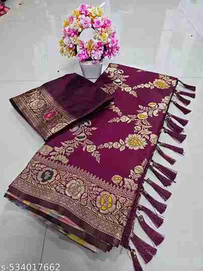 Traditional Elegance: This Banarasi Silk Jacquard Saree is a masterpiece of Indian craftsmanship, bringing together timeless tradition and modern sophistication. Known for its royal look, it is a perfect choice for weddings, festive occasions, and grand celebrations.