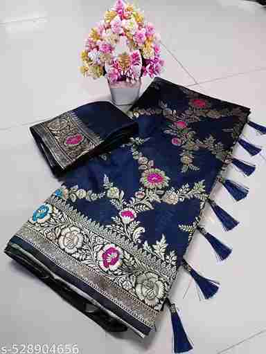 Premium Banarasi Silk Fabric: Crafted from high-quality Banarasi silk, the saree offers a soft, luxurious texture with a rich, graceful fall. The fabric ensures comfort while maintaining a regal shine, making you stand out on any special occasion.