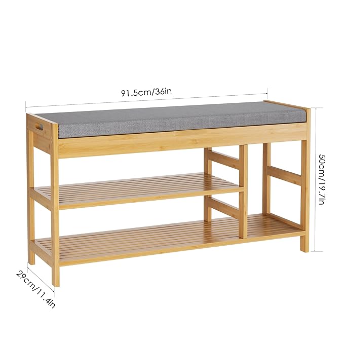 Bamboo Shoe Bench Rack with Storage, Entryway Storage Bench with Padded Seat