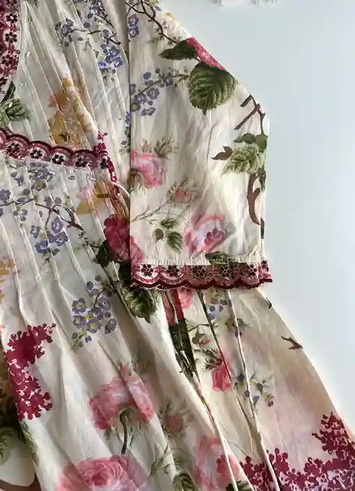 Mul cotton pleated floral Aline Kurti with pants and dupatta