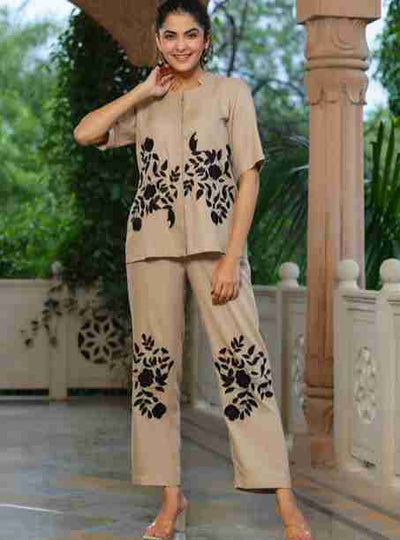 Delicate Floral Embroidery: The highlight of this outfit is the beautifully detailed floral embroidery on the shirt. The intricate designs add a feminine and elegant charm, making the set stand out with subtle sophistication.