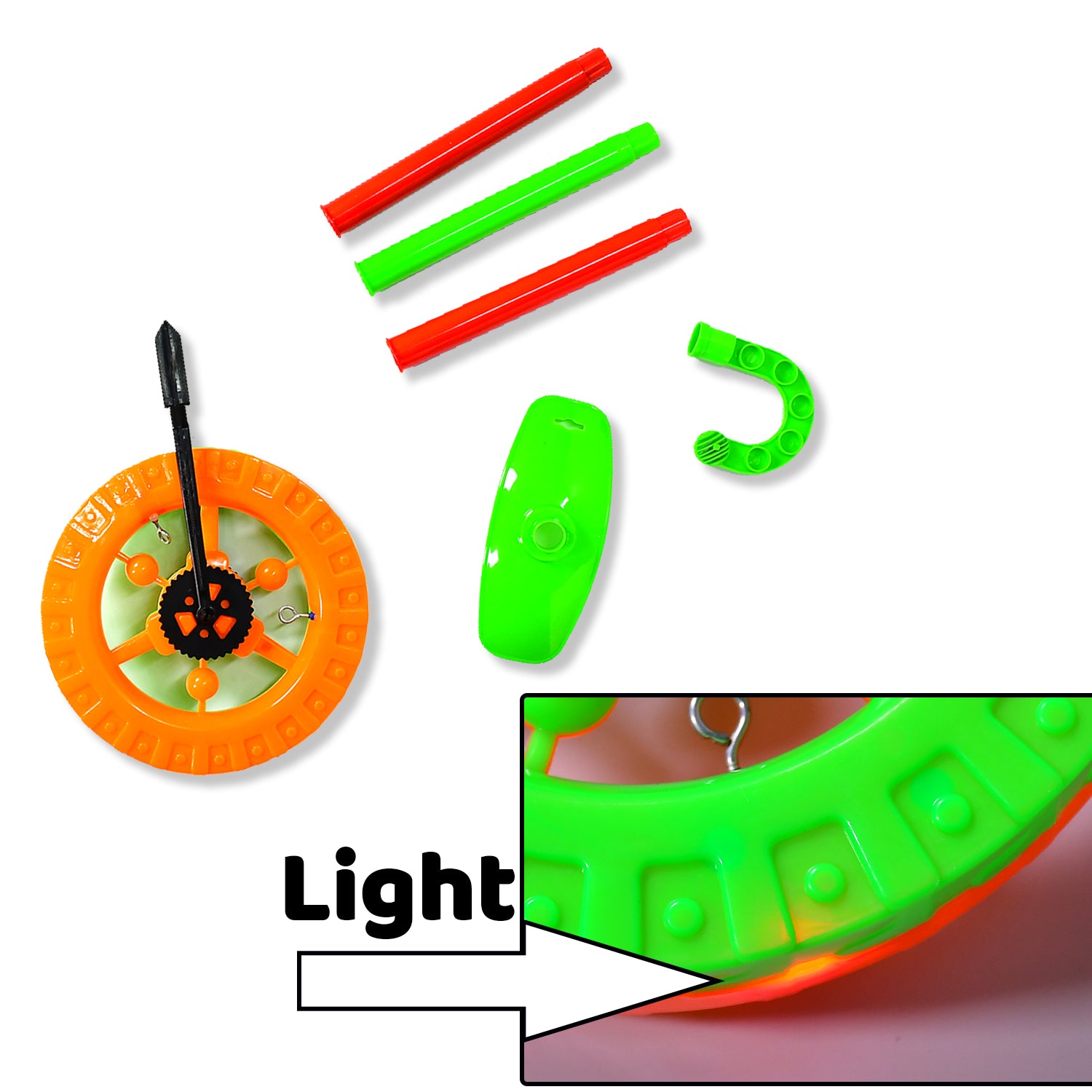 To switch on the light simply rotate the key given on wheel. Two blinking lights are provided on the wheel, which makes this push toy more attractive for kids.