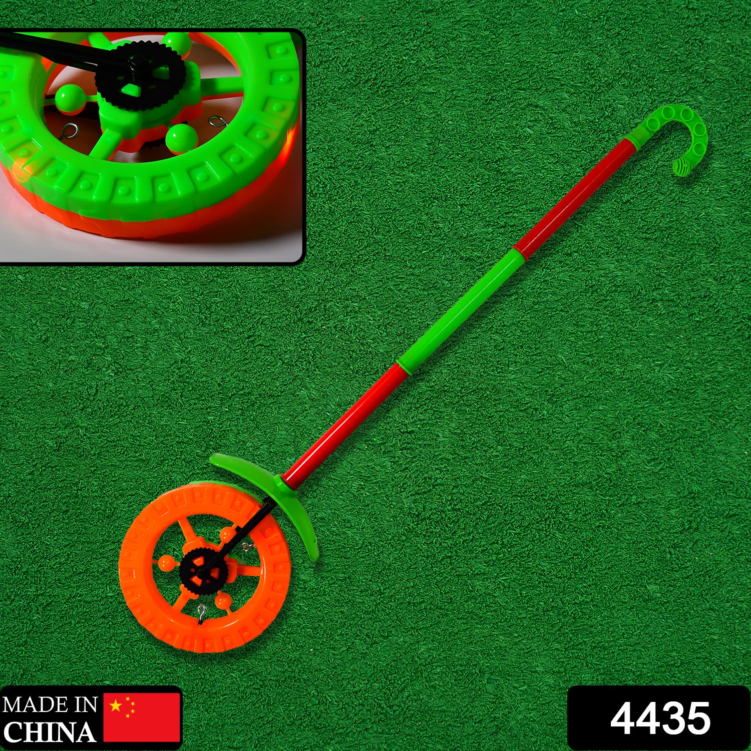 4435 Plastic Single Wheel Push Run toy with handle and two lights on wheel. push toy for Kids.