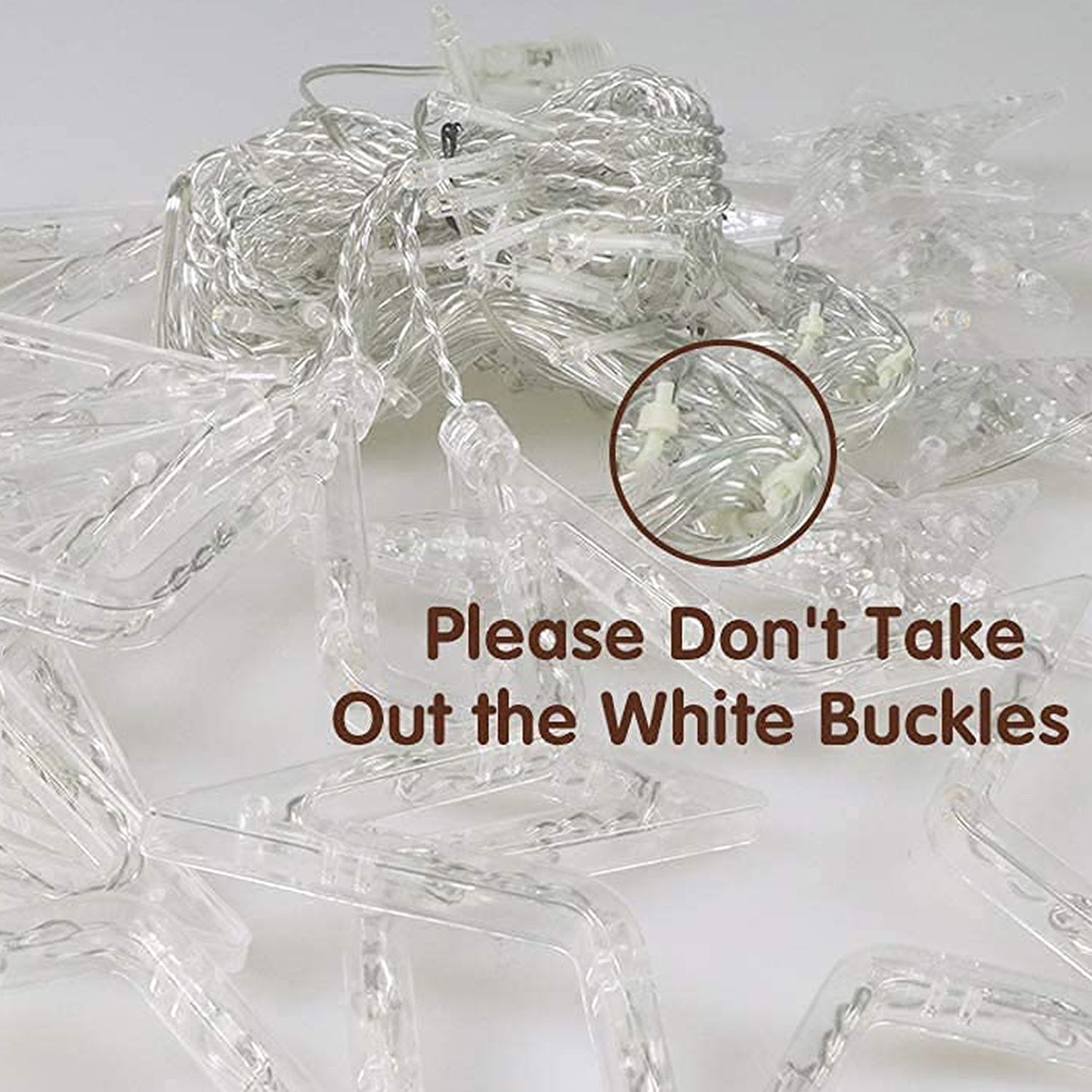 Easy to use : 12 Stars(2 sizes), total 66 LED curtain string lights, Low voltage and Listed power supply, directly plug in and unplug for power on and off
