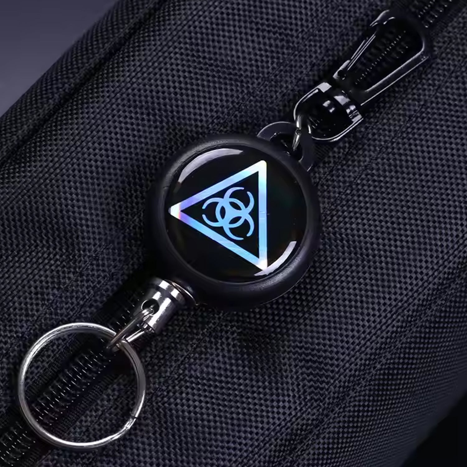 • Metal lobster clasp design on top of reel is simple but secure wherever you attach It. Just simply pull the key out that is attached with stainless steel cord, the cord will be self retracting.