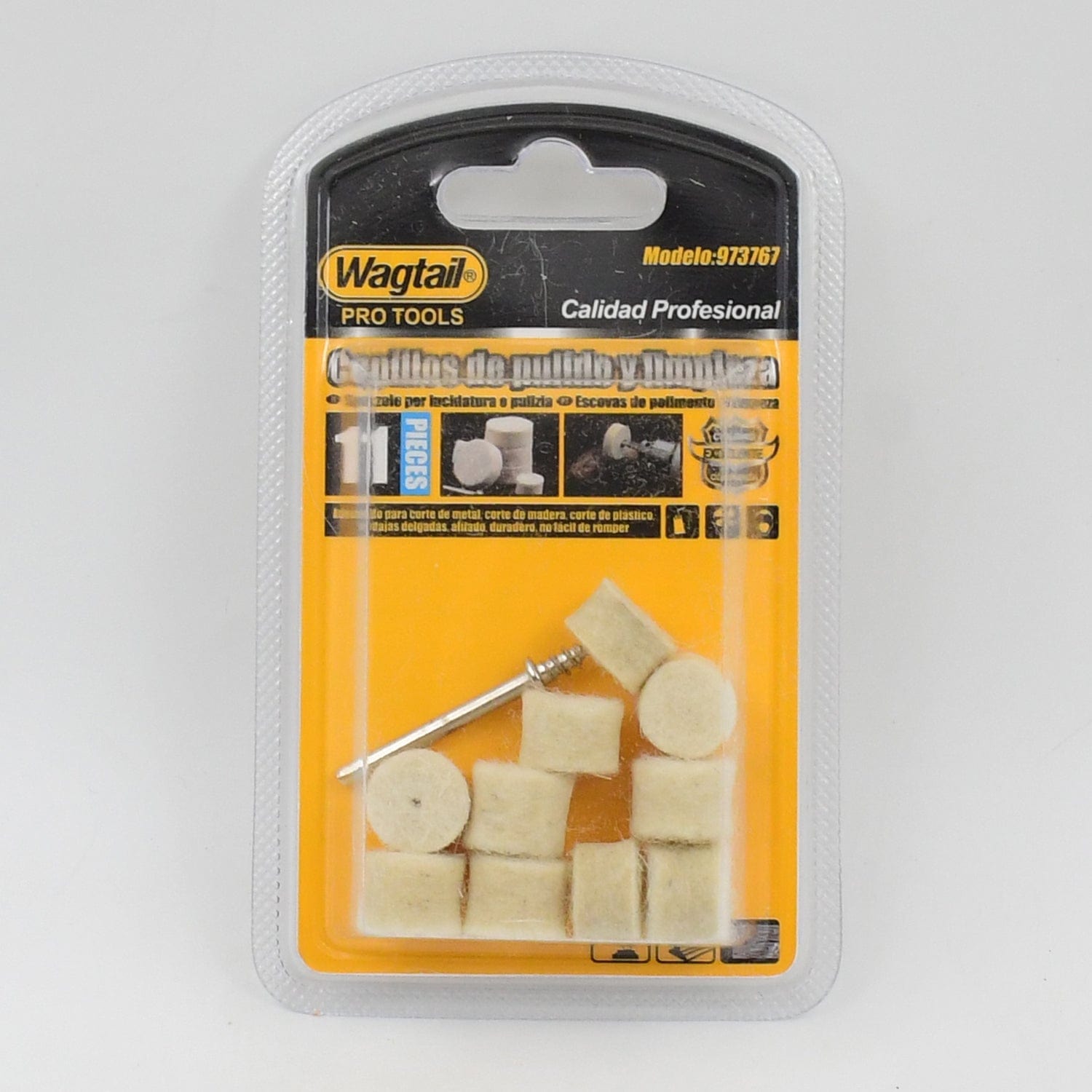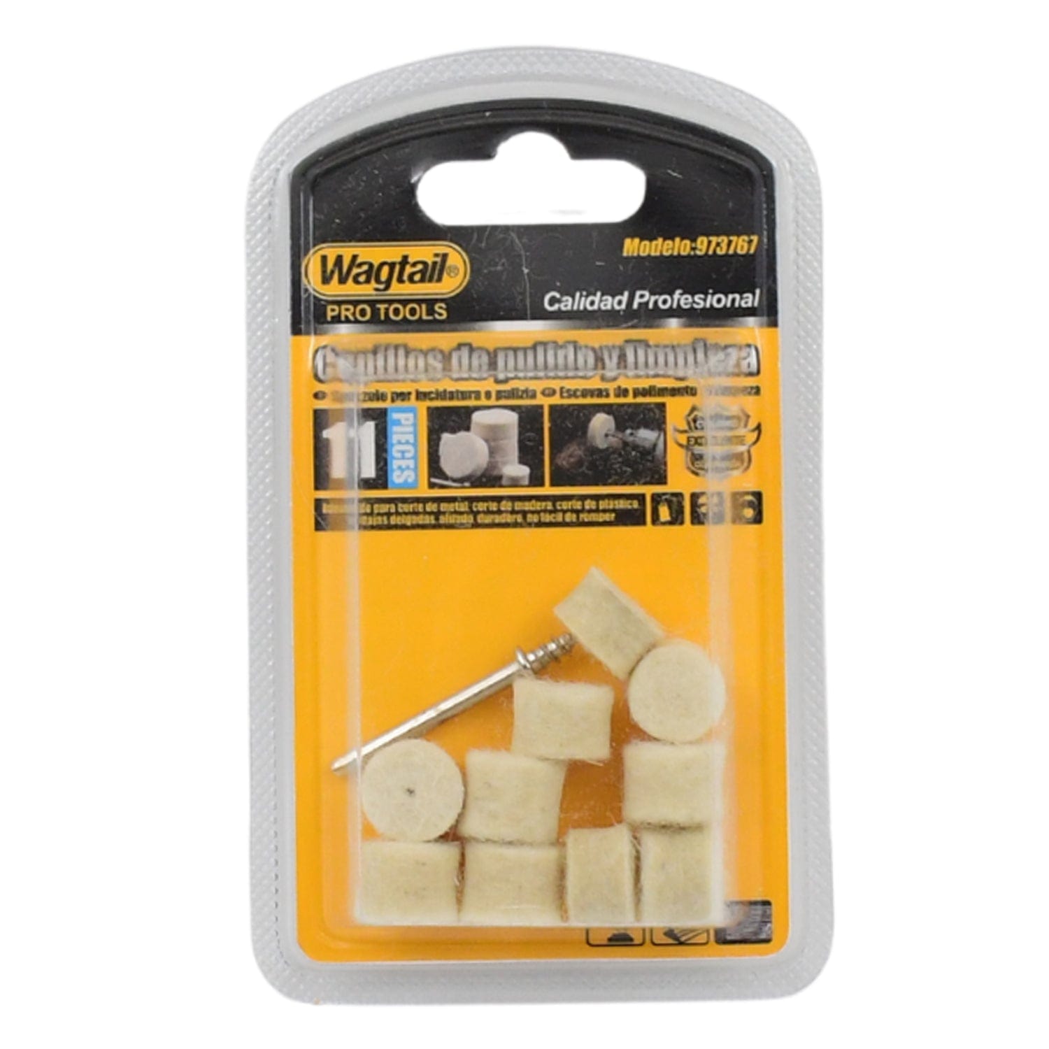 Wool Felt Mounted Mandrel Set : felt polishing pad in different shape and size, large cylinder shaped, small cylinder shaped, bullets shaped, metal shank.