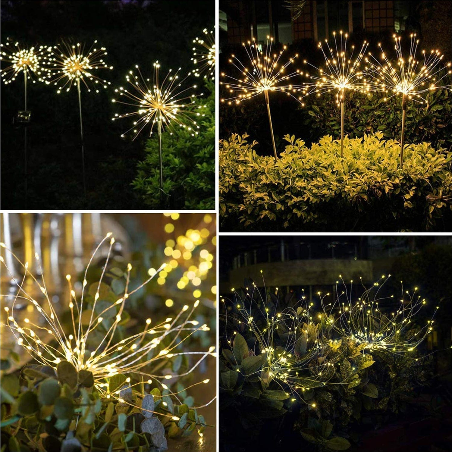 Colourful Led Outdoor Solar Garden Lights, Waterproof Multi Flash Modes 40 Copper Wire String, Firework Stake Starburst Fairy Light, DIY Flowers Trees for Walkway Patio Lawn Backyard Christmas 120LED In 1 Pc (4 Pcs Set)