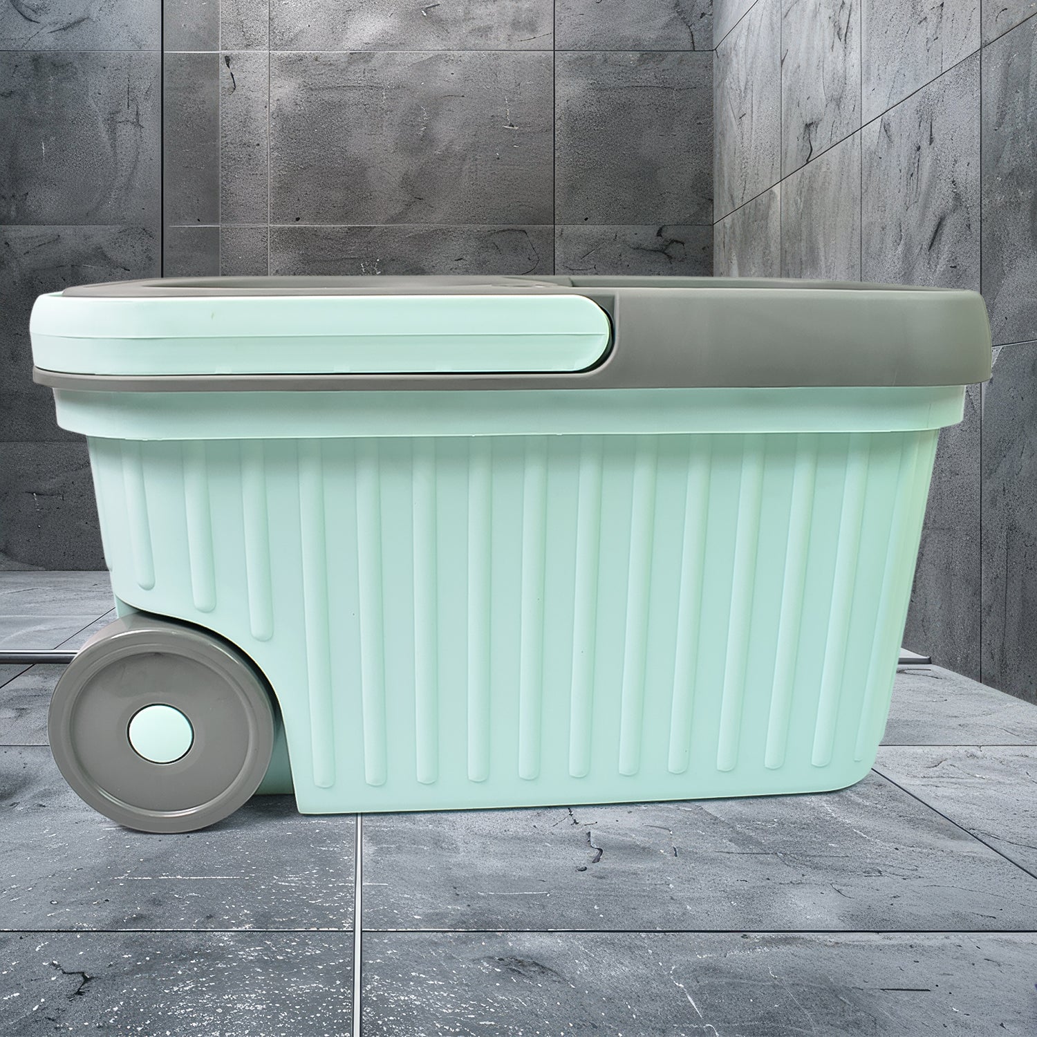 Plastic Spin Mop comes with easy wheels and puller to easily carry the bucket around the house. You just need to open the drain spout in order to drain the dirty water.