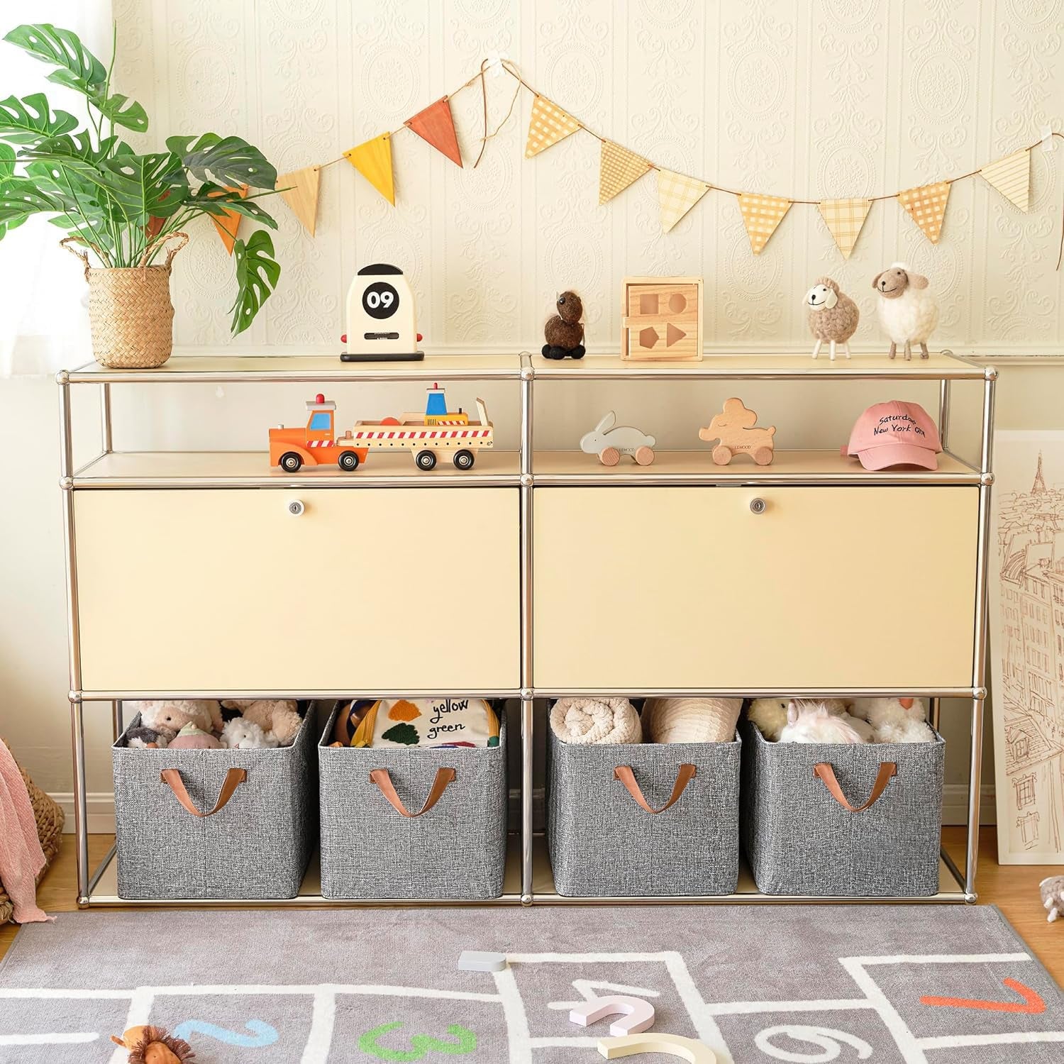 【COLLAPSIBLE & SPACE-SAVING】: The collapsible shelf storage baskets feature a large capacity when pop up, performing strongly in space-saving after folded. These decorative storage baskets are collapsible for easy storage & Transportation when not in use.